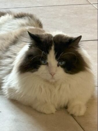 Ragdollkitty El Corezon del Cabo aka ‘Corey’ is magnificent in his social demeanor. He is a big beautiful Seal Point Bicolor with a heart shape on his gorgeous head. He consistently produces healthy, big, gorgeous babies with big round heads and deep blue eyes. He is deliberate and as sweet as can be! So, friends and family don’t really mind when he plops down on their laps if they sit for a period of time! He truly is a King in the best sense of the word. He had (I pray I’ve finally stumped him!) found a way to climb atop our outside double umbrella and lies there as if he is surveying his whole Kingdom 🤣 He has El Cabo del Gato, my first King, as his Grandfather, Mojo del Sol is his huggable Father and a young lady “Moose” is his Mother.